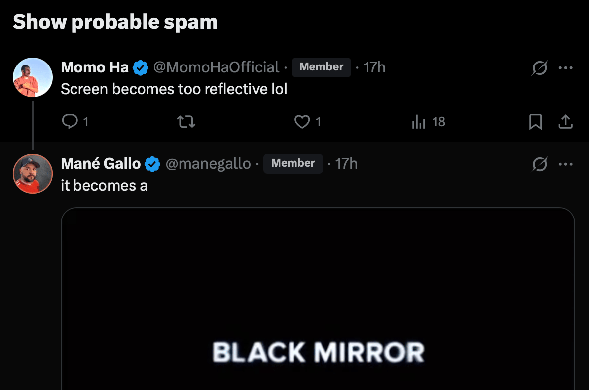 X comment hidden under “Show probable spam”